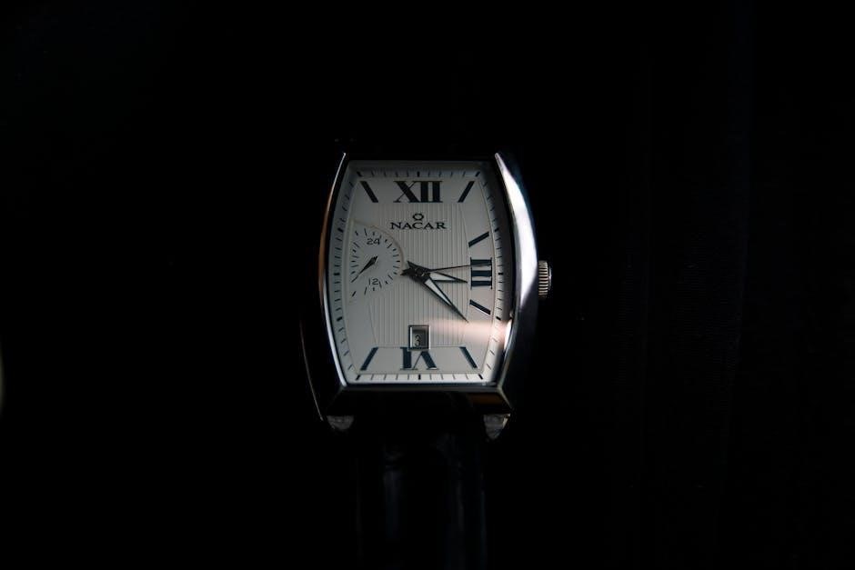 Downloaded resources emphasize gently pushing the crown back to its original position after setting the date, ensuring a secure seal for water resistance. Refer to your specific model’s documentation for precise instructions.